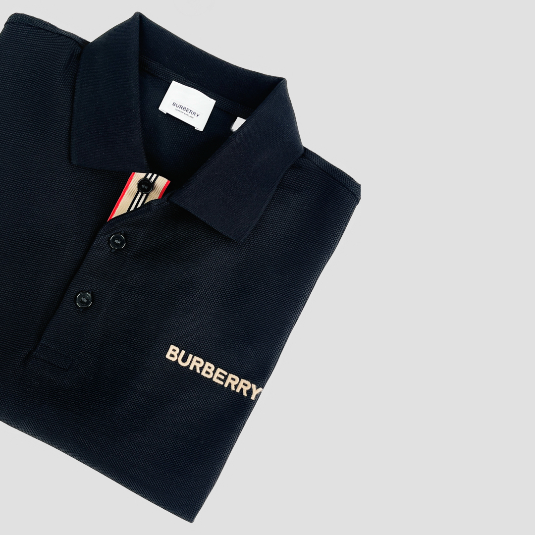 Burberry Hartford Logo Embroidered Polo Shirt In Black