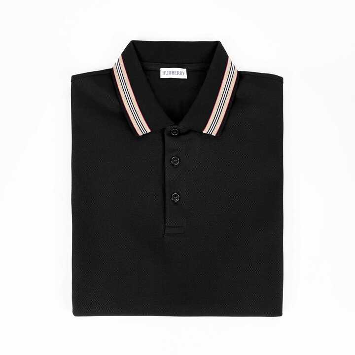 Burberry Hartford Striped Check Short Sleeve Polo In Black