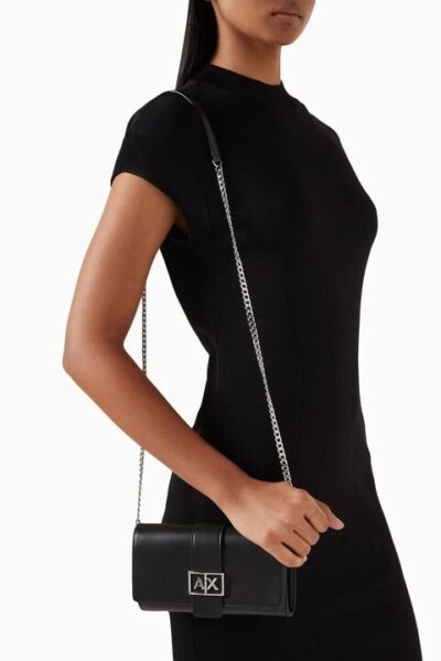ARMANI EXCHANGE Women's black handbag with all-over logo