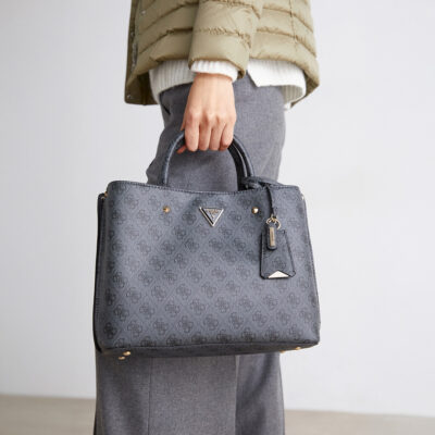 GUESS Meridian Girlfriend Satchel Coal Logo Handbag
