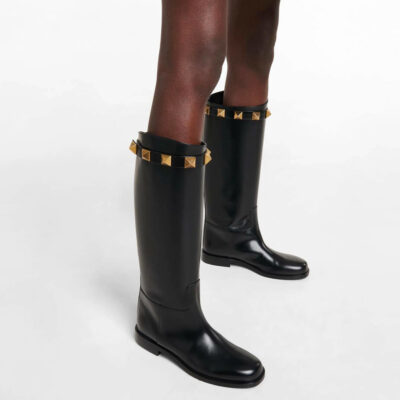 Valentino Calfskin Leather Roman Stud Boot 15mm