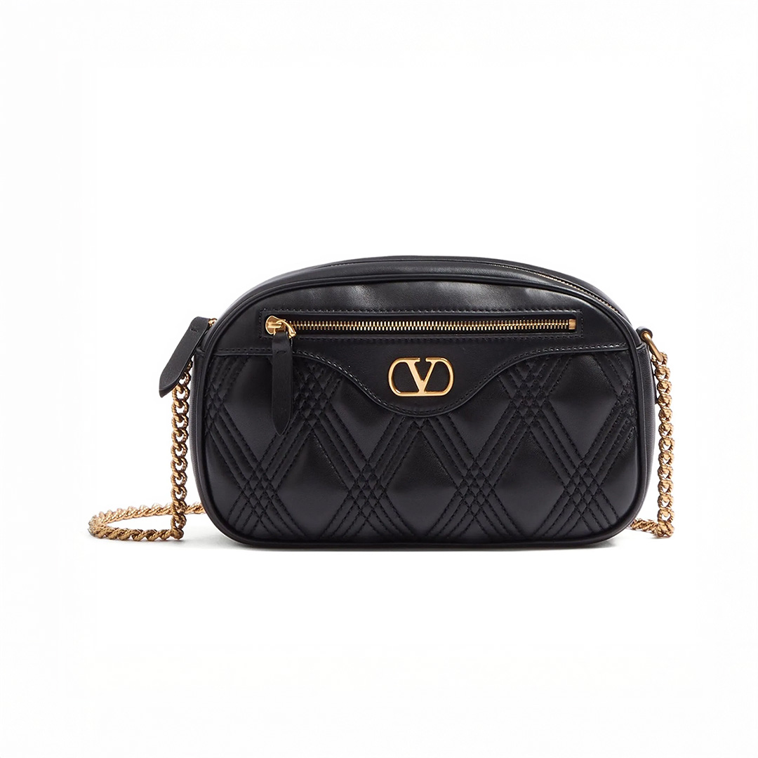 Valentino Garavani Black Quiltie 67 Camera Crossbody Bag