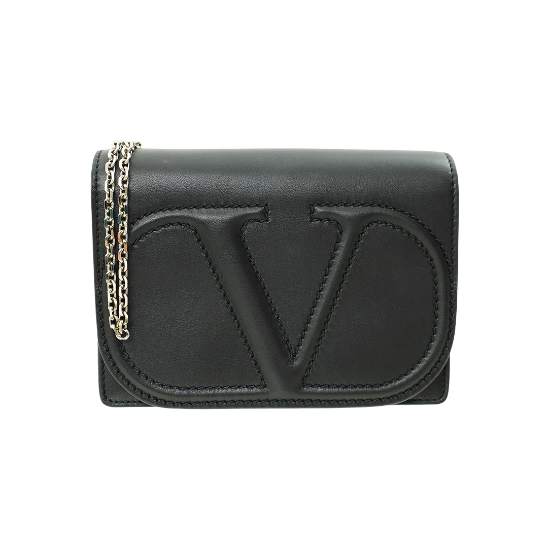 Valentino Garavani V Logo Chain Shoulder Bag Calfskin Leather