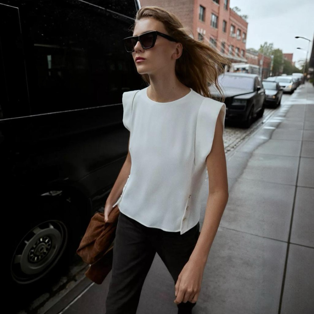 Zara Sleeveless Top With Defined Shoulders